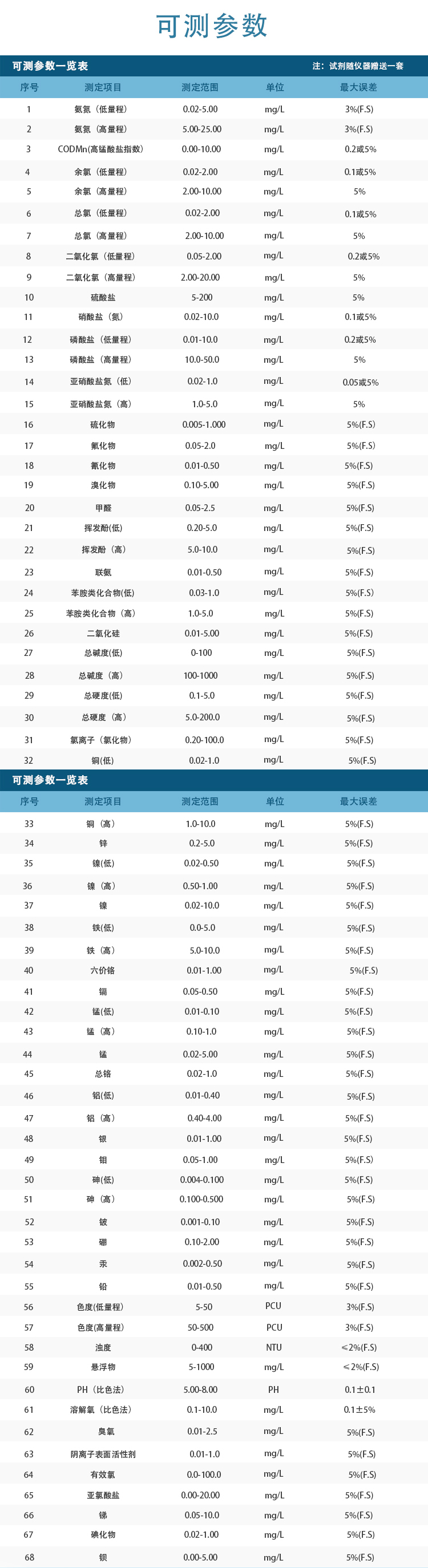 水質檢測分析儀器技術參數: