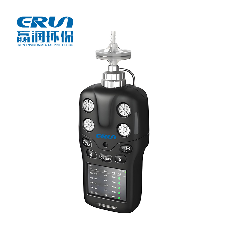 贏潤環保研發、生產的手持式泵吸型四合一多參數氣體報警儀ERUN-PG71S4能同時檢測1-4種可燃有毒氣體,可同時檢測氧氣、甲烷、硫化氫、一氧化碳或其他可燃有毒氣體,也可以配備溫度、濕度測量,檢測氣體種類超過500余種。